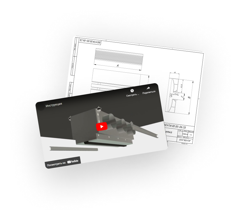 К каждой решетке есть чертеж, 3D-модель и подробная инструкция по установке
